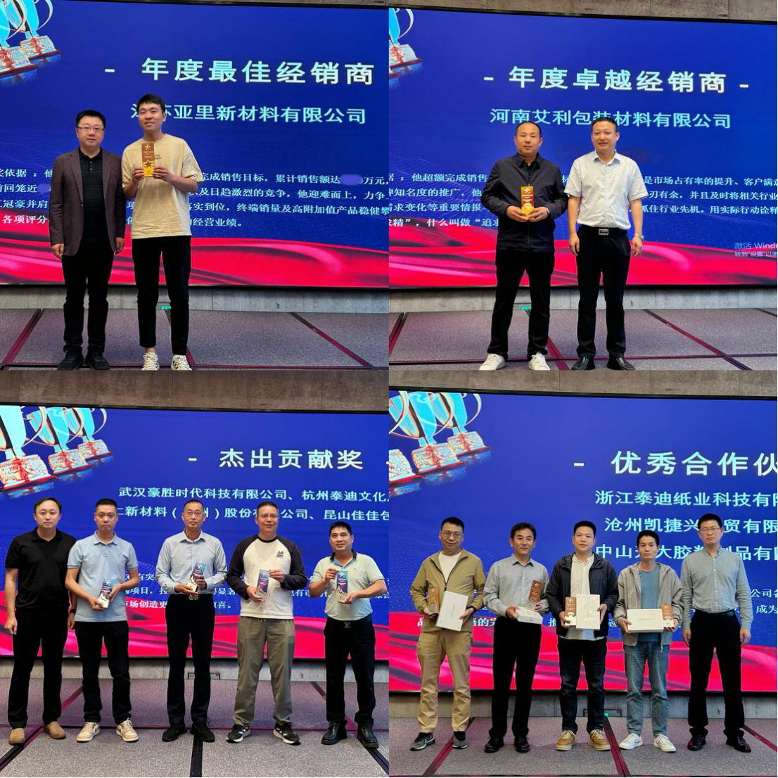 会议最后,浙江冠豪对过去一年表现卓越的经销商进行了表彰,激励全体经销商在诚信经营、品质服务的道路上持续精进。此次会议圆满落幕,浙江冠豪将继续凭借敏锐的市场洞察力、持之以恒的销售热情和创新的经营策略,在市场竞争中稳步前行,与合作伙伴共创美好未来。